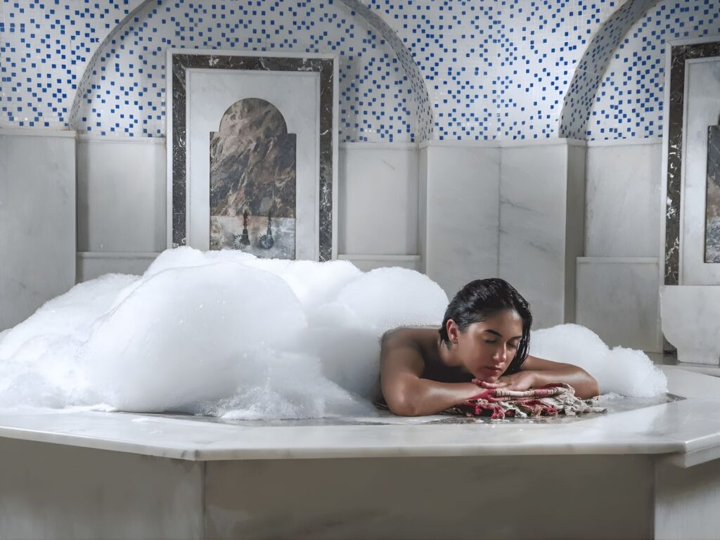 Every detail of our experience is designed to transport you. From the soothing warmth of the central marble stone to the invigorating scrub of the traditional ‘kese’, we ensure that the essence of this cultural treasure remains intact. Here, the water washes away more than just the dust of the city; it cleanses the spirit, leaving you refreshed and renewed.