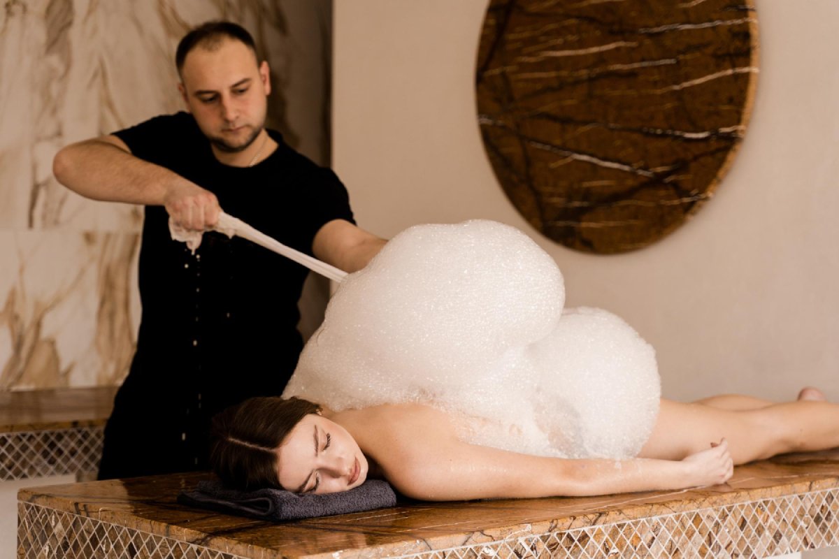 Once exfoliation is complete, the Turkish bath experience continues with a luxurious soap massage. The massage is done with rich, foamy bubbles that cleanse and hydrate the skin. This soothing massage helps to release muscle tension, leaving you deeply relaxed. The gentle, rhythmic movements during the foam massage also aid in circulation, providing both relaxation and health benefits. The soap massage is one of the most indulgent parts of the hammam ritual, offering a full sensory experience that promotes well-being.